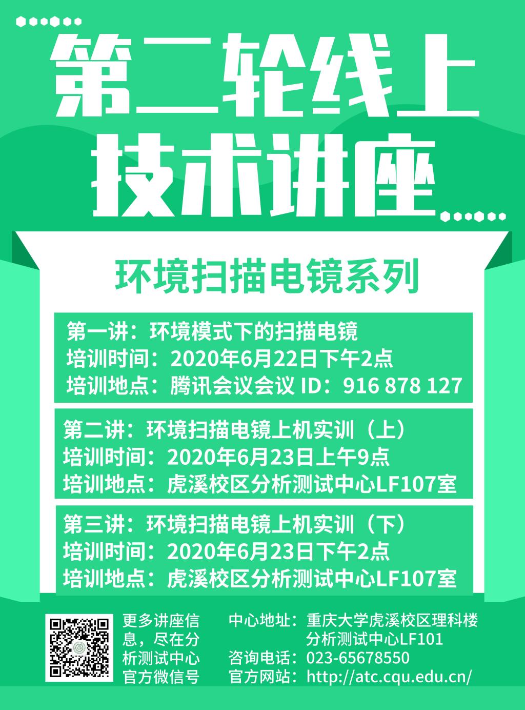 分析测试中心于6月22日-23日开展环境扫描电镜技术讲座(培训)。培训分为理论应用讲座和上机操作培训,具体安排详见下图。欢迎大家积极参加!