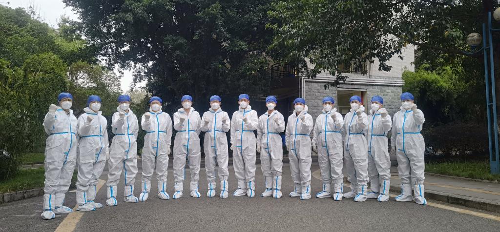 4楼,5楼,6楼…1天,2天,3天…终于,11月14日在突击队共同努力下,竹园五栋的环境监测全部阴性、学生核酸检测全部阴性,竹五第二突击队任务圆满完成。刘杰说:“任务结束后脱下在心里有着神圣地位的防护服,看着被汗水打湿的衣服、戴口罩勒出的印痕,内心的自豪感油然而生,我想这大概就是抗疫人员最美的模样!”刘杰还表示此次投身抗疫服务第一线,深切感受到了学校的强大领导力、组织力和号召力,见证了一批批抗疫一线志愿者老师们持续接力、冲锋在前、无私奉献,他们用有力的行动递交一份“疫”线有我、责任担当的答卷。