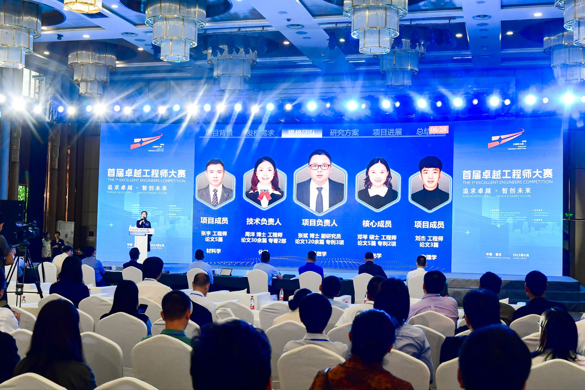 2023年6月16日,首届卓越工程师大赛经过初赛、半决赛、决赛,在重庆市北碚区落下帷幕。决赛当天,揭榜攻坚和创新挑战两个赛道前8强分别采取“10+10”模式进行路演,即参赛团队或个人路演介绍10分钟,评委专家提问10分钟。经过紧张激烈的综合比拼,最终产生金奖2个,银奖4个、铜奖6个、优胜奖4个及十佳成果转化奖。