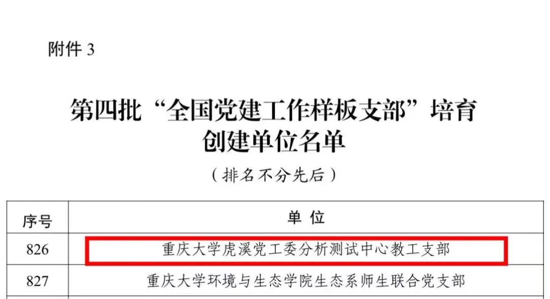 近日,教育部第四批“新时代高校党建示范创建和质量创优工作”遴选结果揭晓,虎溪党工委分析测试中心教工支部成功入选“全国党建工作样板支部”培育创建单位!
